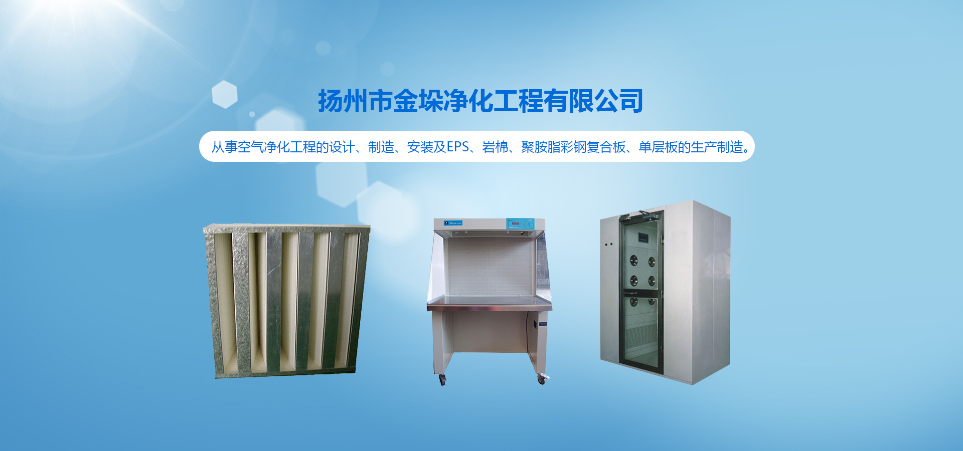 我司專業(yè)從事空氣凈化工程的設(shè)計(jì)、制造、安裝及EPS、巖棉、聚胺脂彩鋼復(fù)合板、單層板的生產(chǎn)制造。